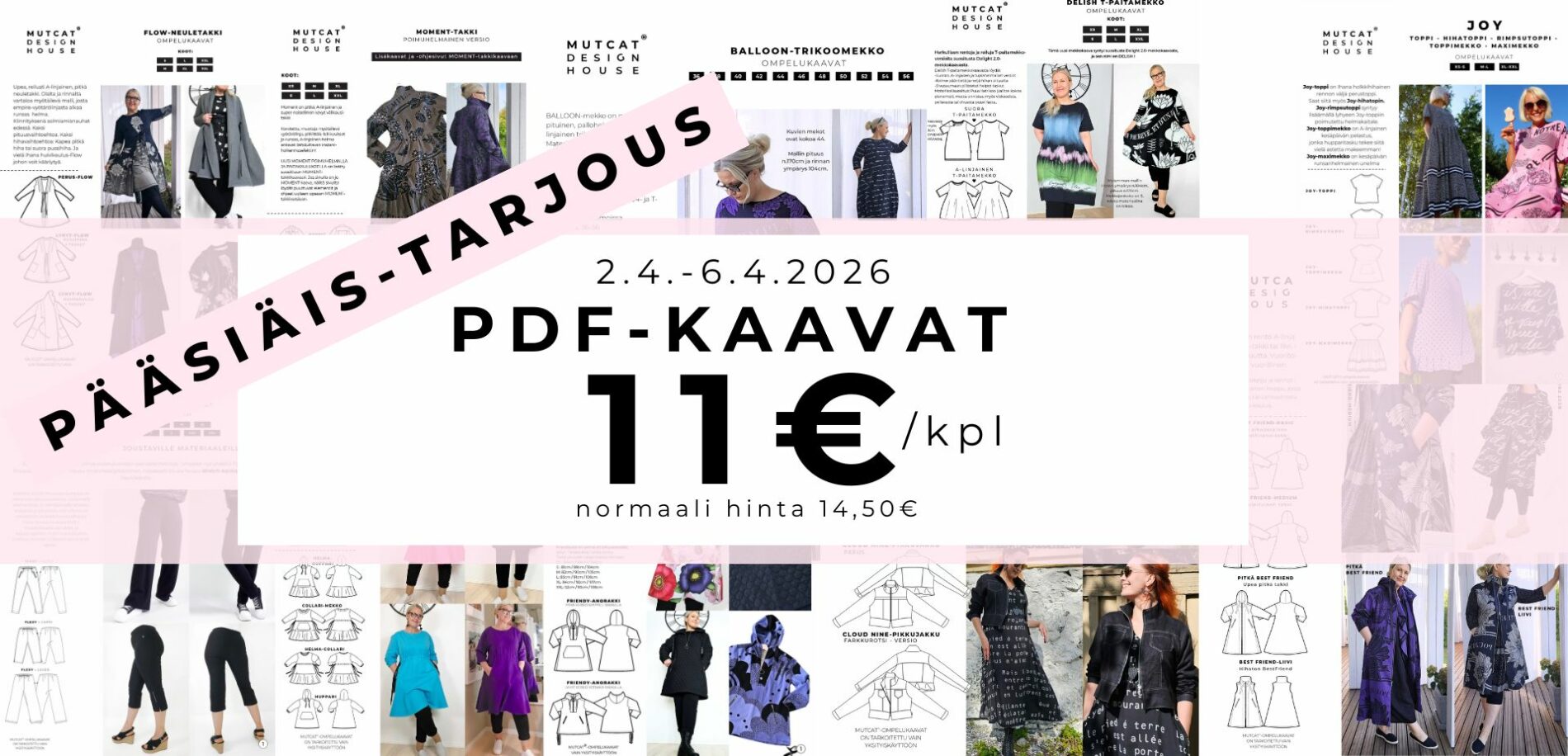 Oletko valmis innostumaan uudesta ompeluprojektista? Hyvä! Täältä löydät kaavat, kankaat ja muut tarvikkeet ihaniin malleihimme. MUTCAT-maailmassa löydät myös video-ohjeita mallistomme helmiin. Voit seurata vaihe-vaiheelta miten olen itse ommellut kuvissa esiteltäviä vaatteita.