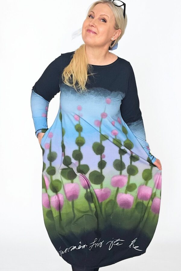 Balloon-mekko Niittyapila-trikoosta – koko 44