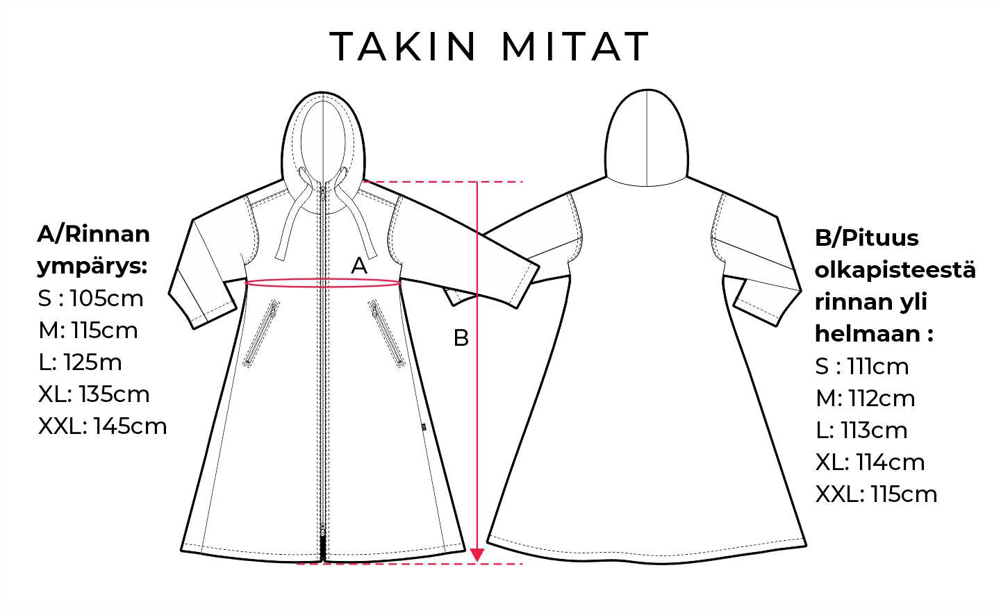 • Koot: S, M, L, XL ja XXL