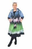 Kuvan malli (Jeps: se olen minä, Marjukka) on 172 cm pitkä, rinnan ympärys on 104cm, ja hänellä on päällään koko M. Huom: jos haluat kuvassa olevan takin lailla istuvan koon, mittaa rinnanympäryksesi, ja valitse koko jossa rinnalle jää sinulle noin 10cm väljyyttä (isoissa koossa jopa 15cm).