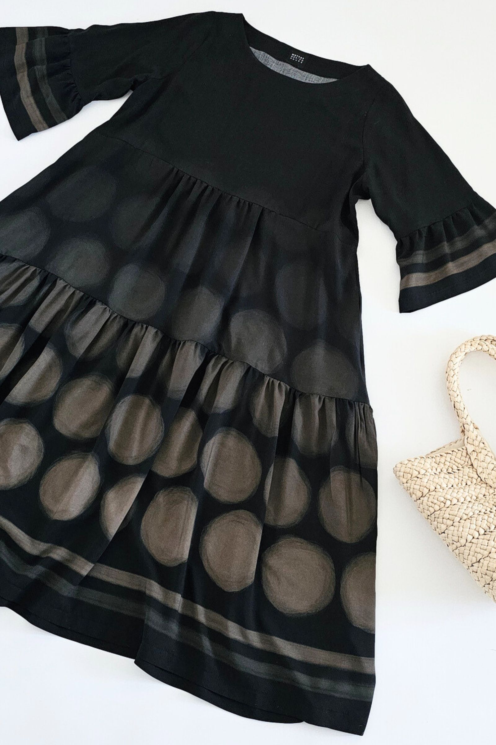Daydream-kerrosmekossa on siro olkalinja, ja korotetulta vyötäröltä alkaa kaunis kaksikerroksinen poimutettu helma. Kevyestä viskoosi-kankaasta kannattaa valita tarpeeksi reilu koko: Valitse koko niin, että rinnanympärykselle jää vähintään 5-10cm väljyyttä.