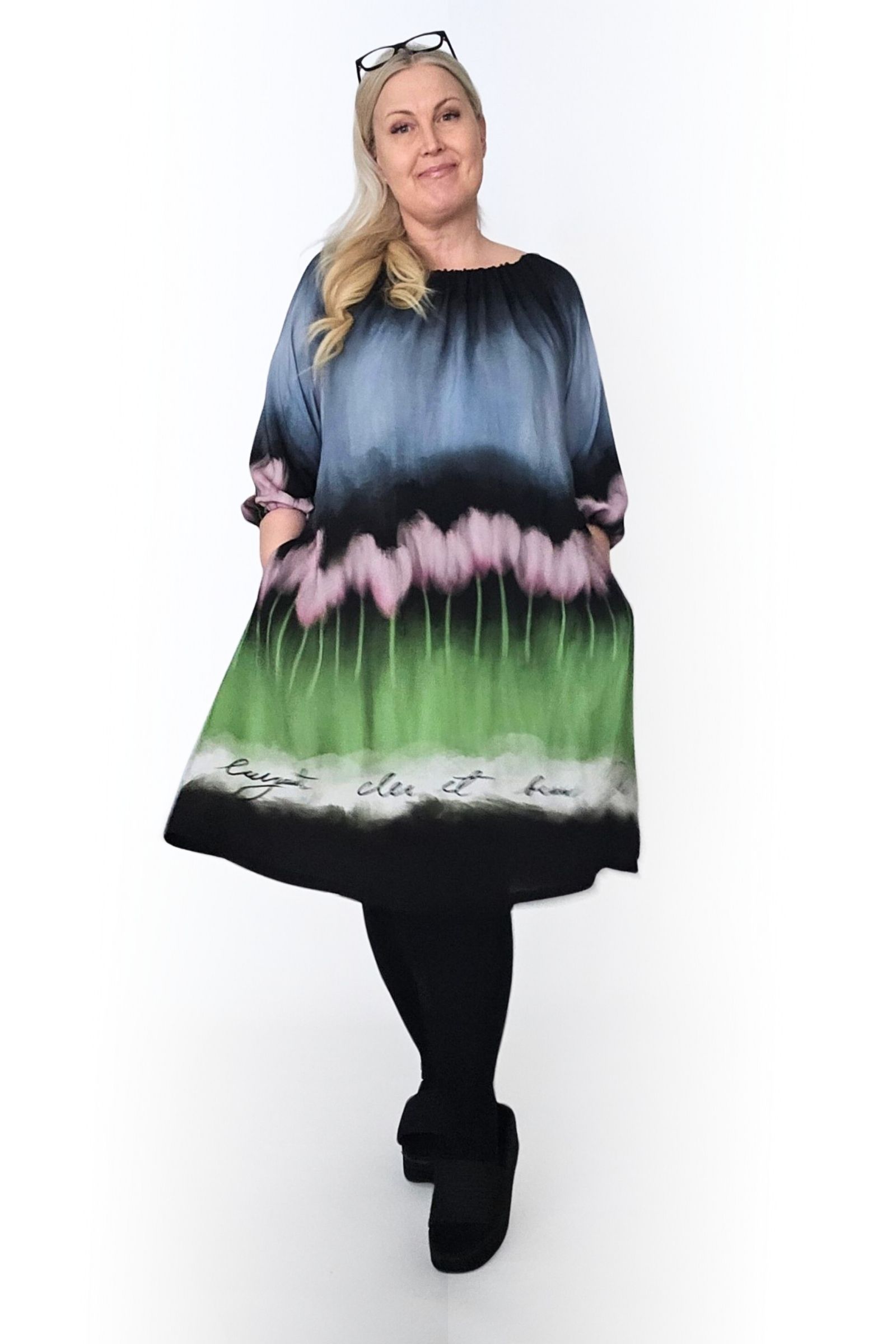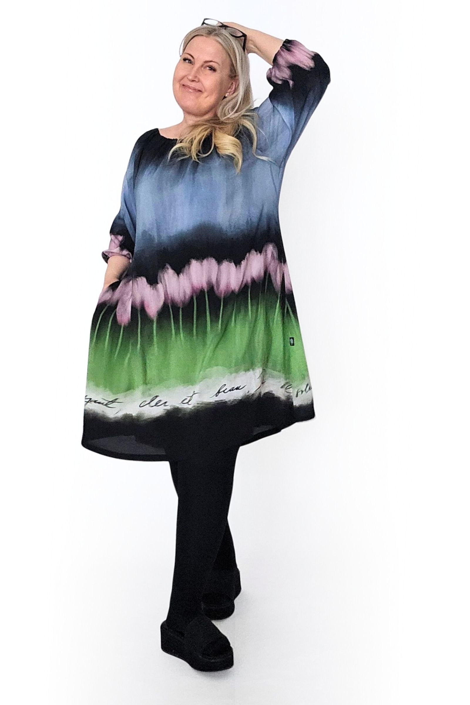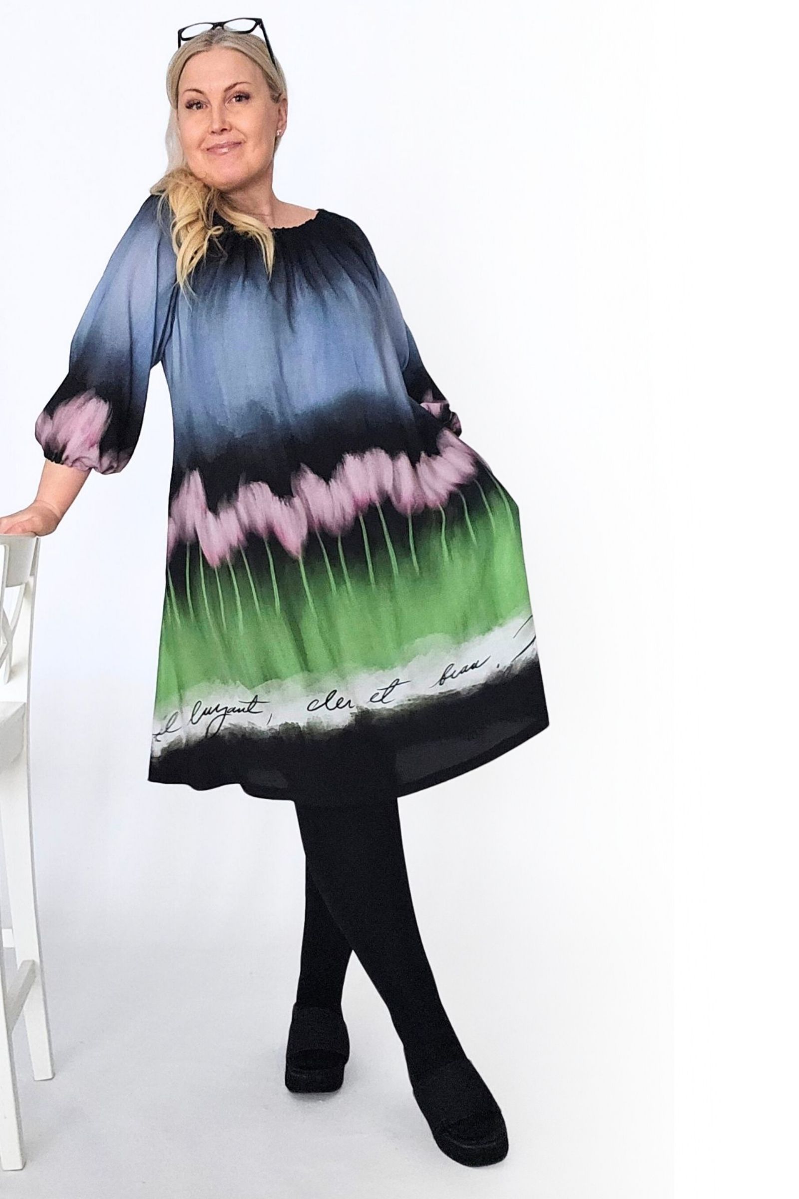 Ilmava A-linjainen raglahihainen viskoosimekko, koot M, L ja XXL